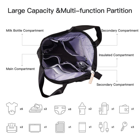 Dollcini Fekete Baba Hátizsák – Vízhatlan, Nagy Kapacitású Pelenkázó