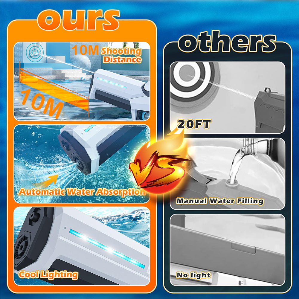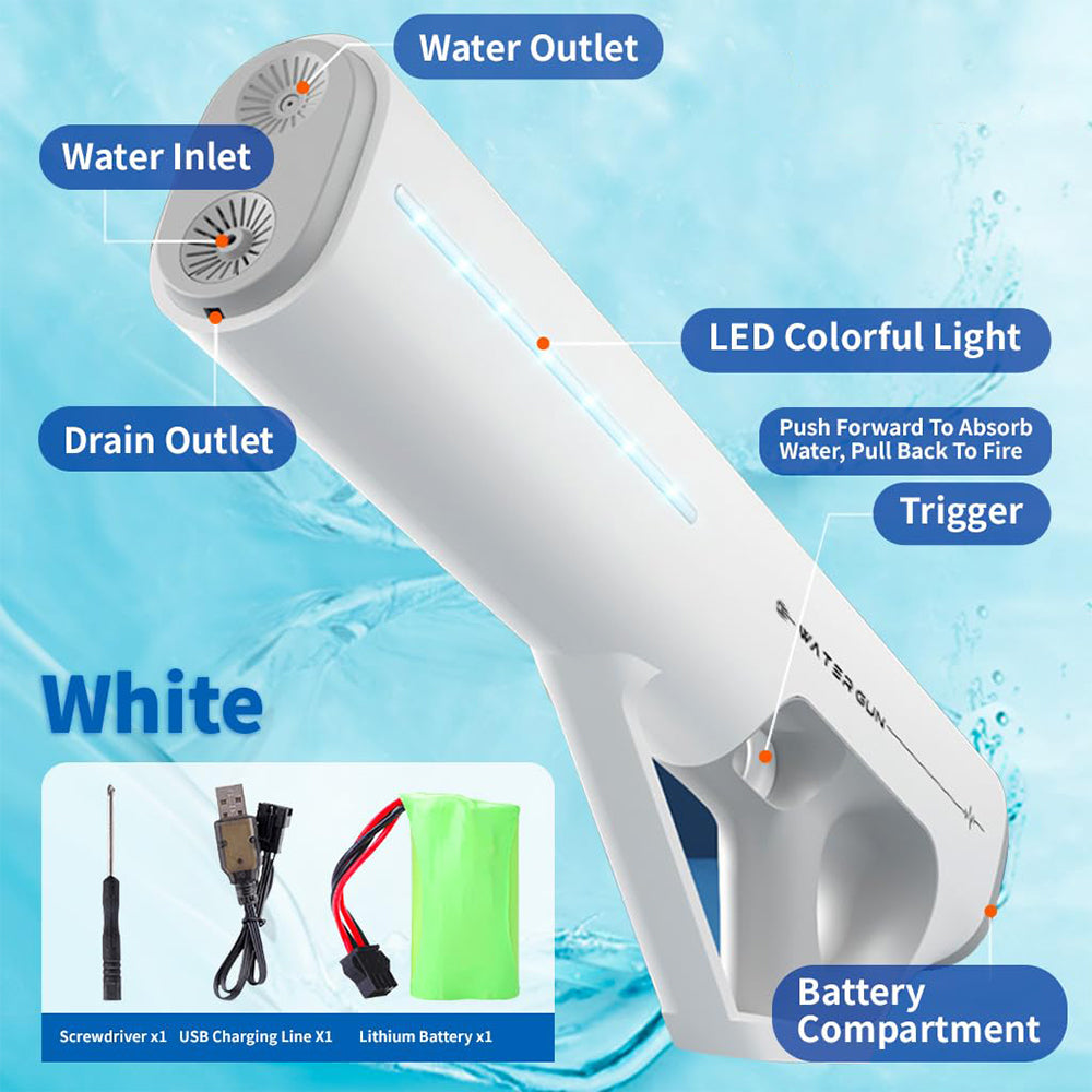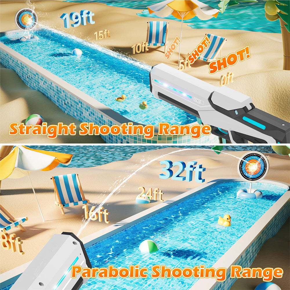 Akár a tengerparton, a kertben vagy egy medencés bulin játszol, ez az elektromos vízipisztoly garantáltan vidámságot és izgalmat hoz minden korosztály számára!