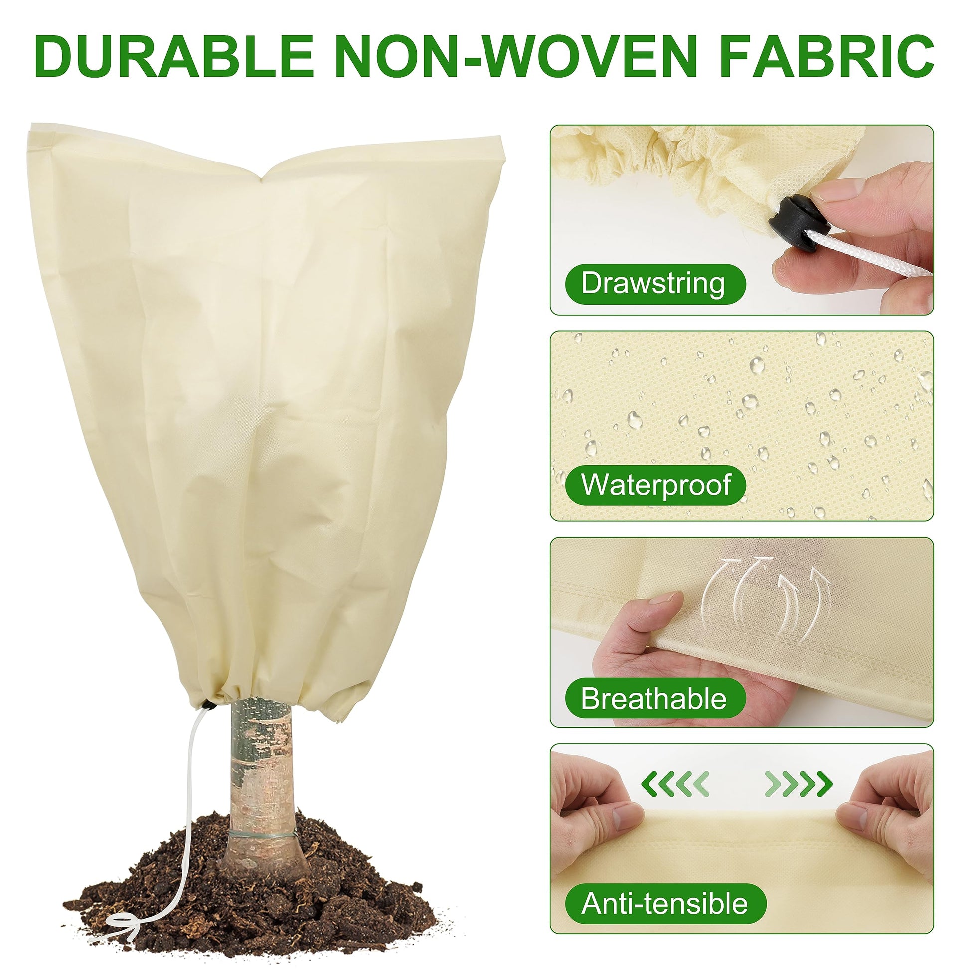 Újrahasználható, Tartós Szövet – Növényi huzataink télen is újrahasználhatók, vastagságuk biztosítja a szükséges védelmet, miközben a szövet lélegzõ marad. Ezáltal a kültéri növények fagykendõje biztosítja, hogy a növények megkapják a szükséges napfényt és nedvességet a takarón keresztül.