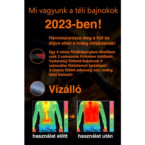 - 3 szénszálas fűtőelem a test elülső és hátsó részén