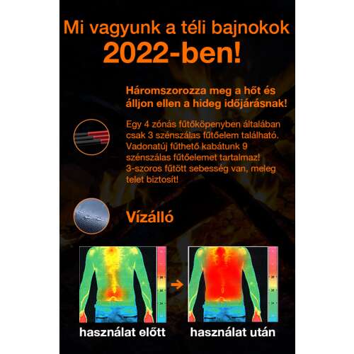 - 9 minősített szénszálas fűtőelem, háromszorosa a szokásos 4 fűtött zónás kabátnak