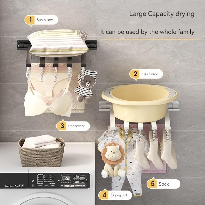 Dollcini Otthon Helytakarékos Fali Ruhaszárító – Többfunkciós