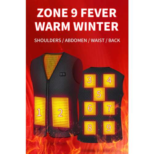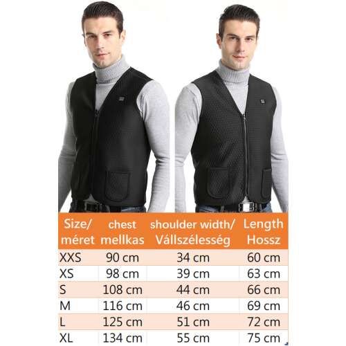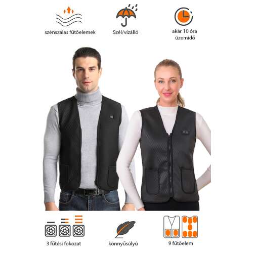 - 9 Fűtőelem: 9 szénszálas fűtőelem elosztva a nyakon, vállakon, elülső részen és a teljes háton a teljes melegség érdekében.