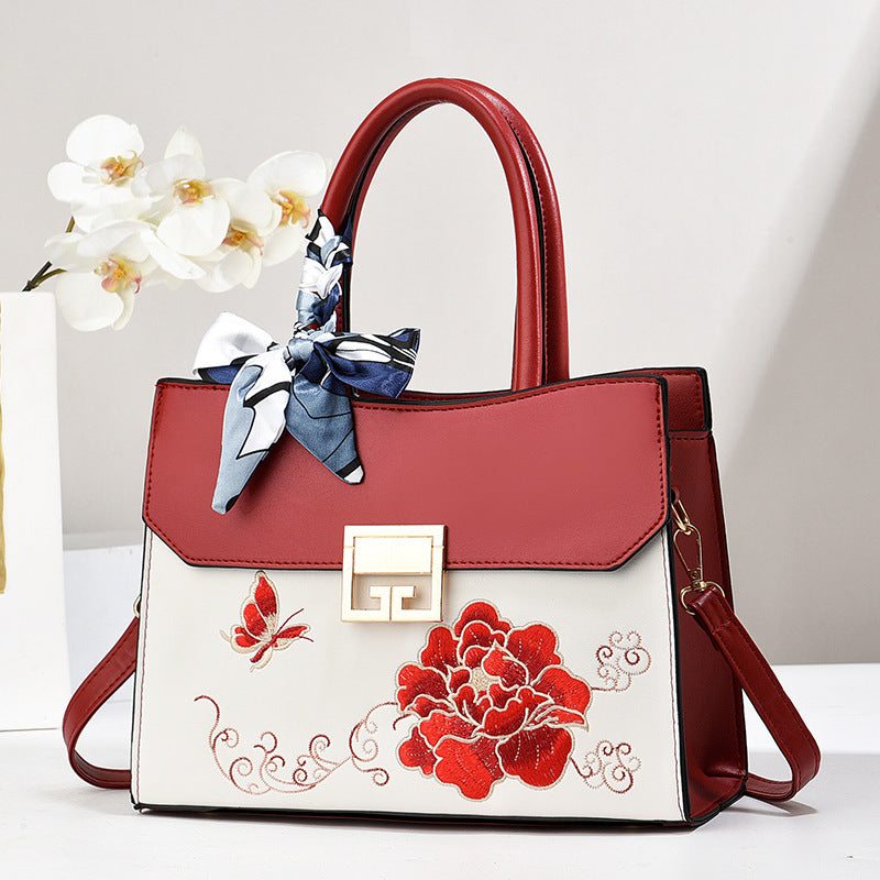 A Dollcini hímzett nagyméretű női válltáska az elegancia és a praktikum tökéletes kombinációja. A különleges virágmintás hímzés és a selyemsál díszítés egyedi karaktert kölcsönöz, miközben a tágas belső tér laptopnak, dokumentumoknak és személyes tárgyaknak is helyet biztosít. Prémium minőségű műbőrből készült, tartós, stabil kialakítással és biztonságos cipzáras zárással. Ideális választás munkába, utazáshoz, bevásárláshoz vagy hétköznapi használatra, amikor a stílus és a funkcionalitás egyszerre fontos.