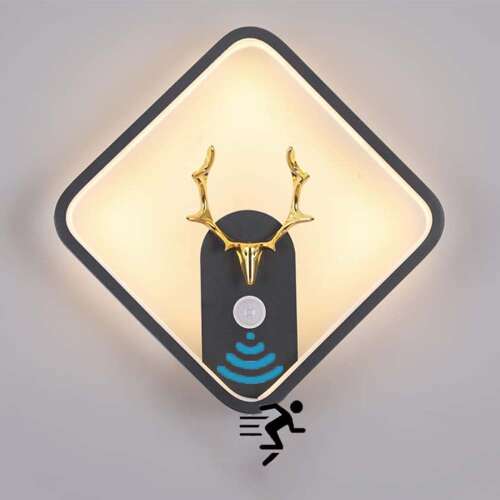 - Mozgásérzékelős LED Fali Lámpa – Arany Szarvas Dekorral