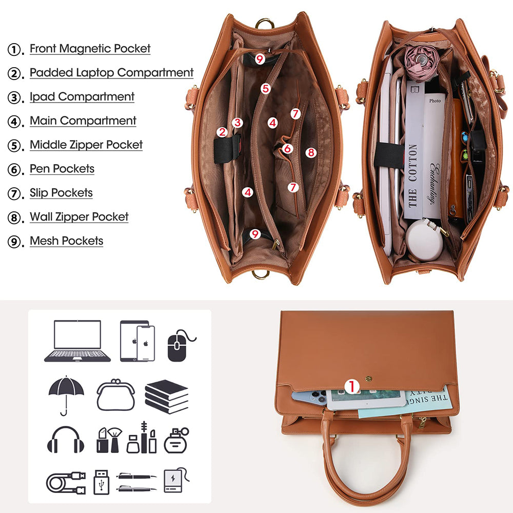 Dollcini Női Laptoptáska – Vízálló Műbőr Válltáska, 15,6" Laptophoz