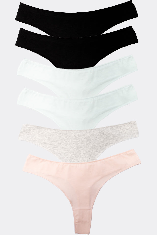 Dollcini Tanga Női Bugyi - 95% Pamut, Többszínű, 6 db-os Csomag