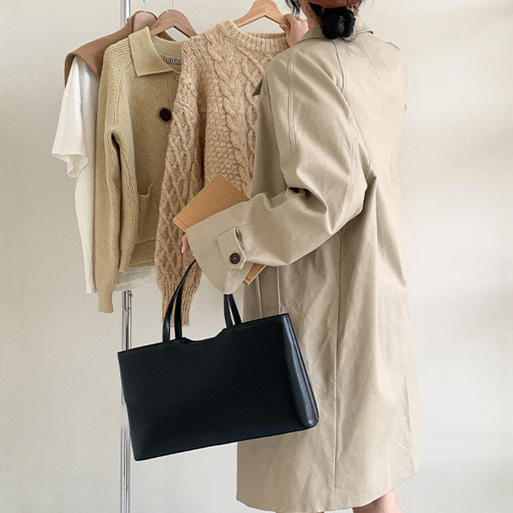 A Dollcini koreai stílusú női kézitáska a minimalista divat és a praktikum tökéletes ötvözete. Prémium minőségű, vízálló műbőrből készült, amely tartós és könnyen tisztítható. Tágas belső rekesze elegendő helyet biztosít A4-es dokumentumoknak, iPadnek, kulacsnak és mindennapi kiegészítőknek. Egyszerű, elegáns formája és kényelmes fogantyúi miatt ideális választás munkába, iskolába, vásárláshoz vagy utazáshoz.
