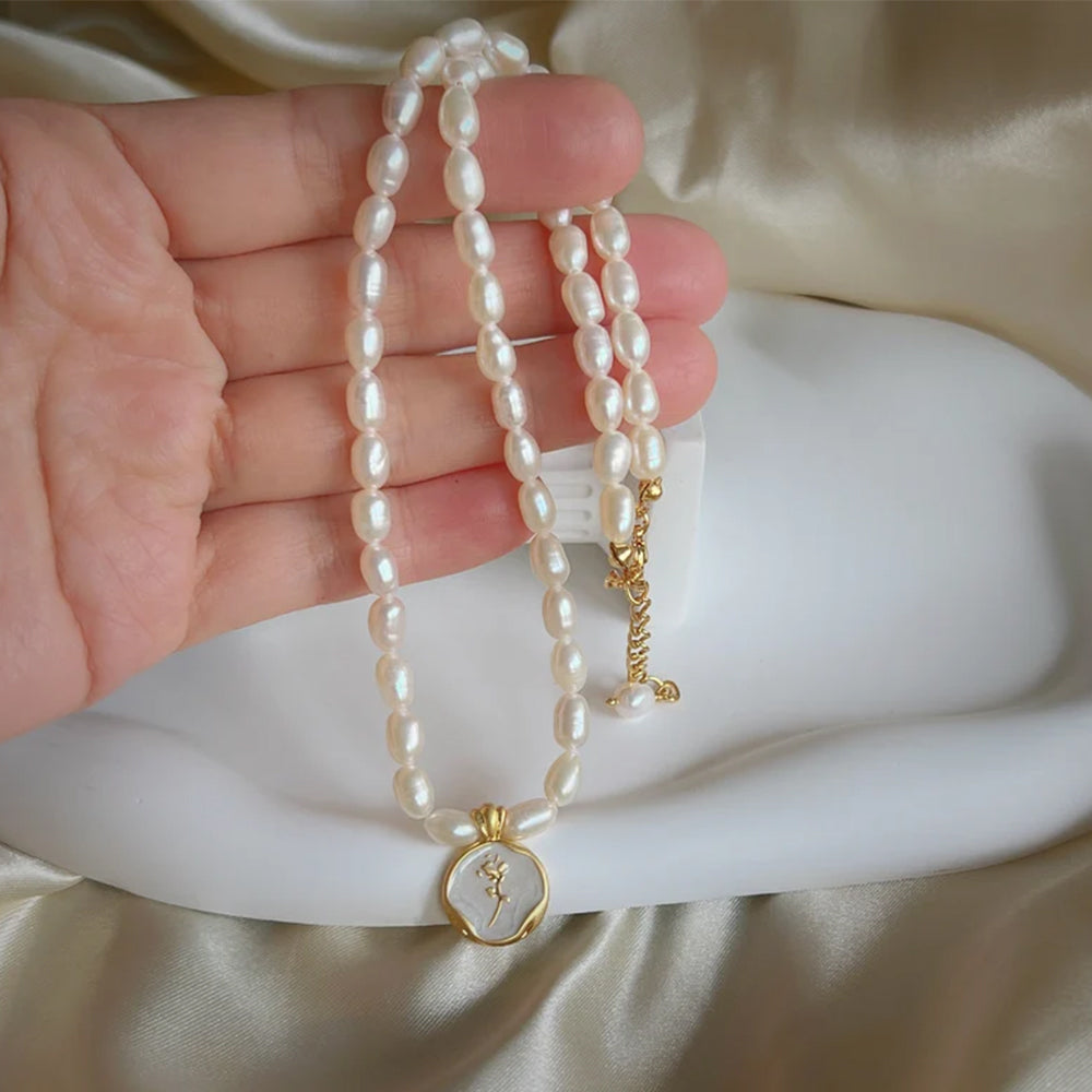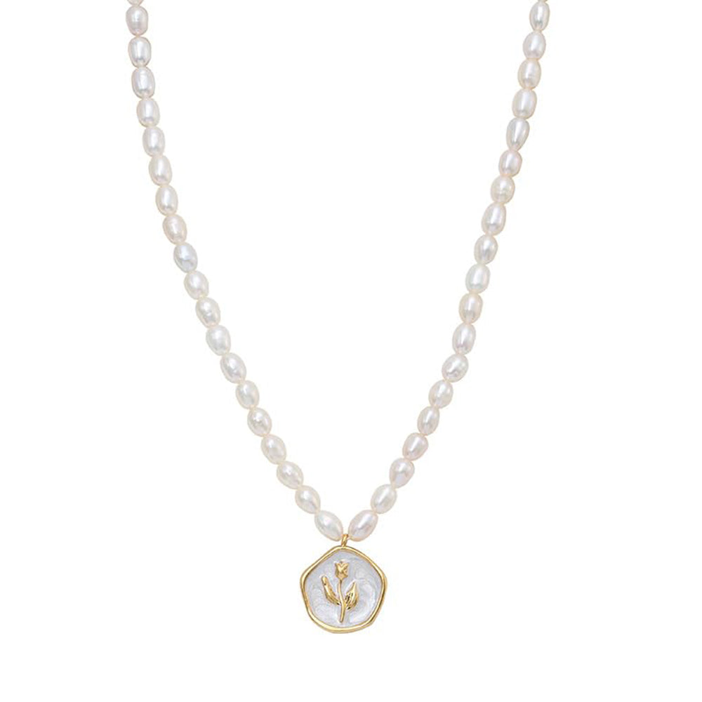 Dollcini Pearl Gyöngy Nyaklánc Virág Medállal – Rózsa vagy Tulipán