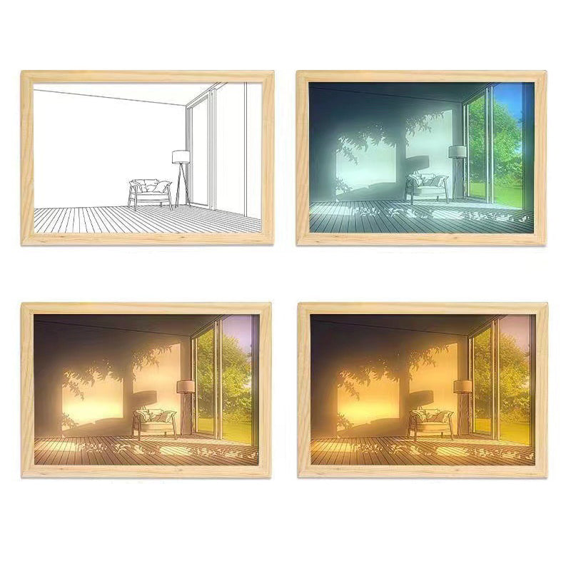 Környezetbarát tömörfa keretes fényfestmény: Fenntartható anyagokból készült, stílusos dizájnnal.