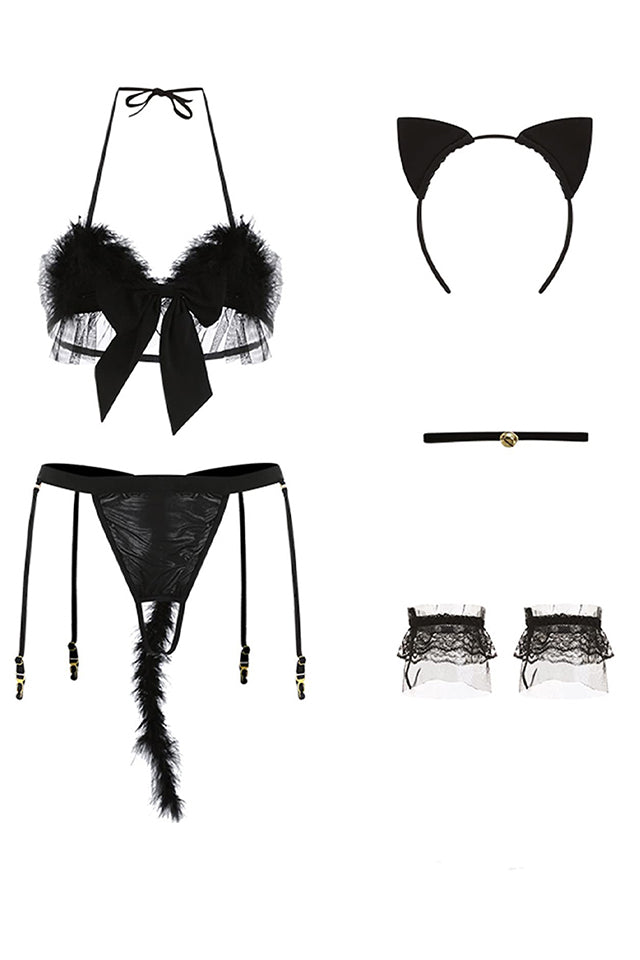 Az aranyos, mégis csábító macskafül-fejpánt és a hátoldalon lévő farok játékos erotikával tölti meg az összhatást – igazi karakterbe öltöztet.