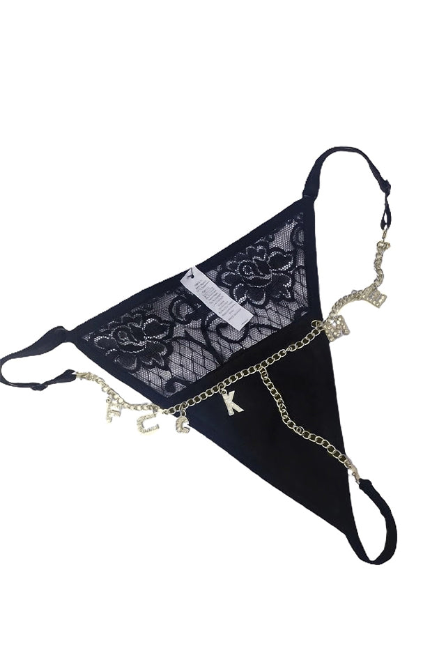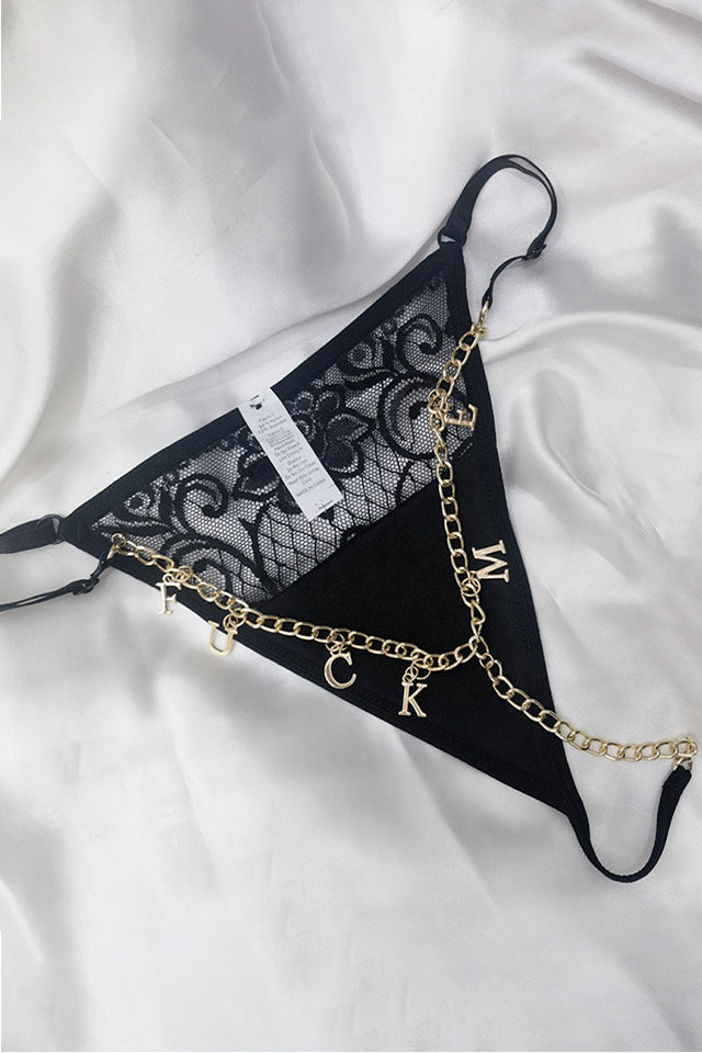 - Szexi Láncos Csipkés Tanga – Arany Betűkkel Díszített Derékékszerrel